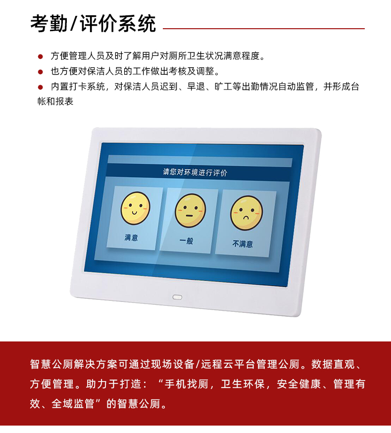 摘要:智慧厕所系统采用最新物联网技术。主要由三部分构成:感知层、传输层、应用层。集异味气体探测、客流量、蹲位、公厕引导组成。通过环境传感器采集公厕环境实时数据实时上传至云平台。大屏显示公厕环境参数,异味超标实时预警,同时接入移动端。实现现代化,信息化,自动化,智能化的“智慧厕所”。响应号召全面建设现代新都市。